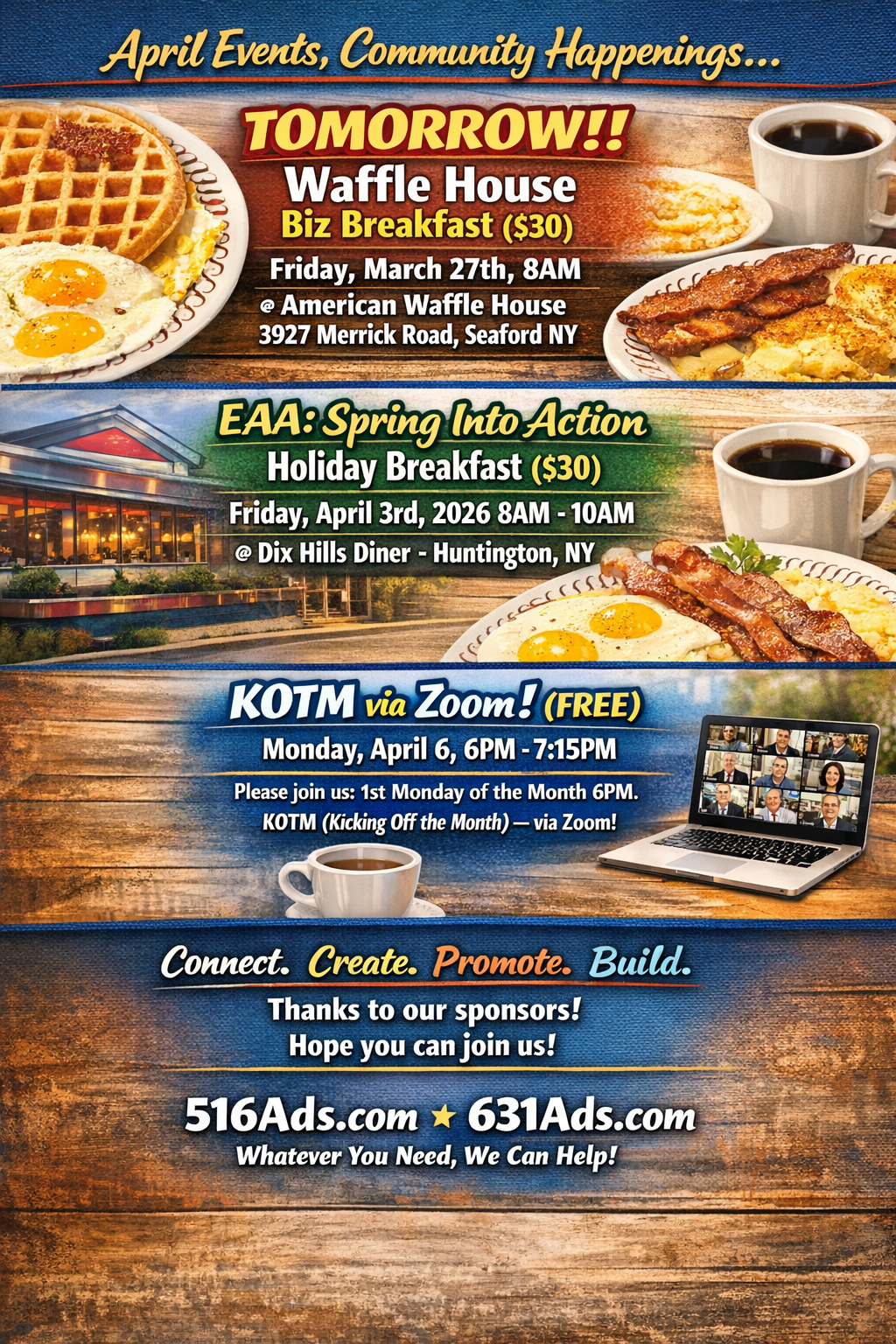 516Ads/ 631Ads are proud to team up with event sponsors Island Better Hearing, Giuseppe Di Bartolow / Keller Williams Legendary, The Towles Group& Boris Mikhail, Financial Advisor at Edward Jones as we host ourBusiness Networking Breakfast @ American Waffle House. $30 per person. Please RSVP.Connect. Promote. Learn. Grow. Better your business. Hope to see you there!