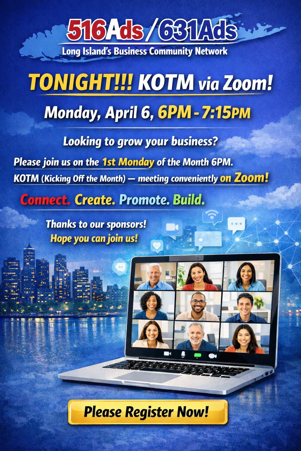 Thanks to Tom Paccione – TPAC Consulting & Ben Indiviglia – Douglas Elliman – Commercialfor teaming up with us. Thanks to  Helping Hands Risk Solutions, Joseph Fusaro – Oppenheimer & Company, Inc., Safe Haven Insurance , Web Design Pro – Lisa Cappiello  & Ilene Corina – PULSEfor their support. KOTMvia Zoom!Hope to see you on the call. Please click here to register!